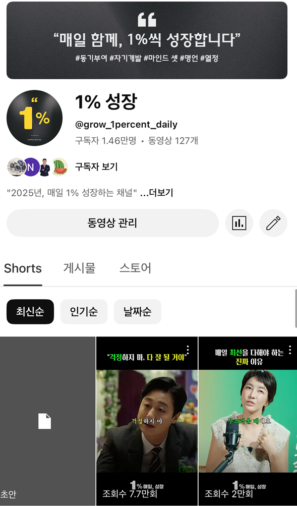 유튜브 쇼츠 채널 '1% 성장'을 6개월 운영했습니다.